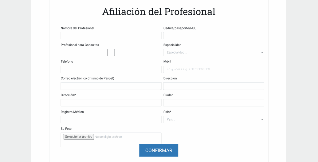 - El correo y celular (+507) del médico debe ser real.